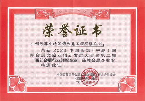 我公司被大會(huì)推薦評(píng)選為“西部品牌會(huì)展企業(yè)獎(jiǎng)”“西部展覽領(lǐng)軍企業(yè)”。